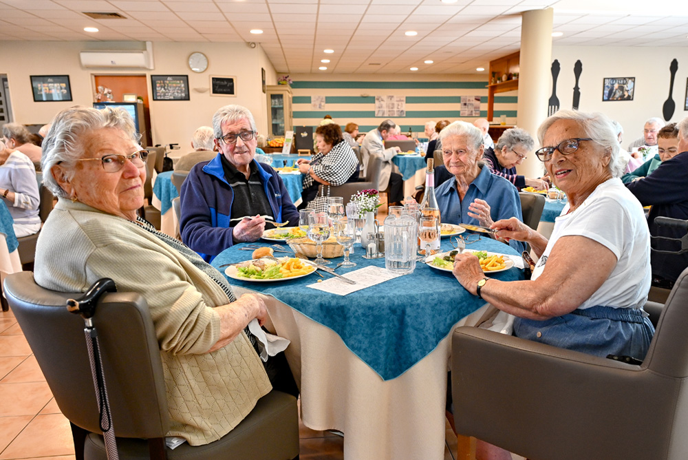 Les espaces communs, rénovés en 2021, sont lumineux et conçus pour favoriser les échanges entre résidents, que ce soit lors des animations quotidiennes ou dans un cadre plus informel.