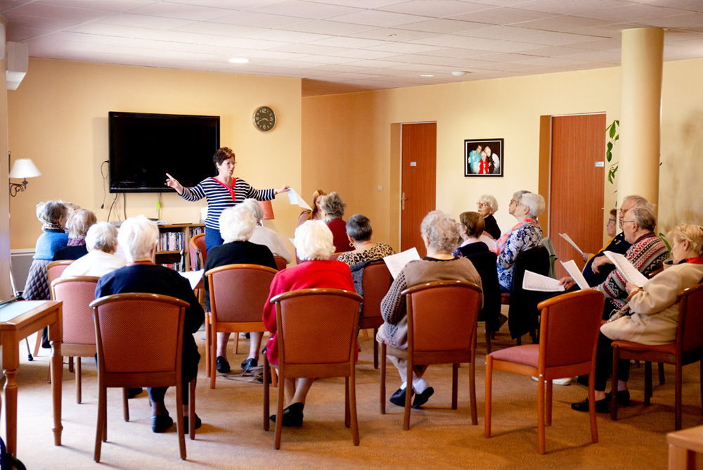 Cela fait maintenant 10 ans que je suis ici, j’ai trouvée un accueil, un partage avec les autres résidents, une sécurité et des animations intéressantes pour autant que mes oreilles me le permettent ! Je pense que l’on se sent considérer et que l’on est vraiment dans une relation humaine, on n’est pas du tout un numéro ou un pion, nous sommes considérés pour ce que l’on est. Ça nous permet d’accepter de vieillir entouré !